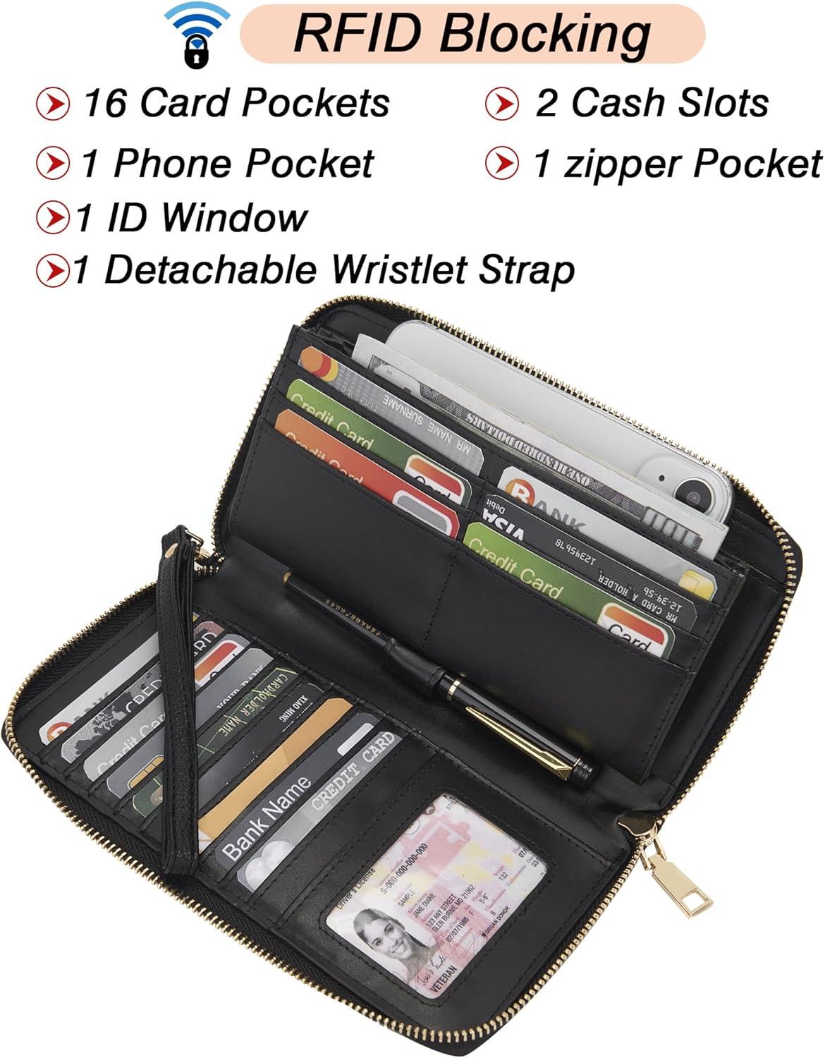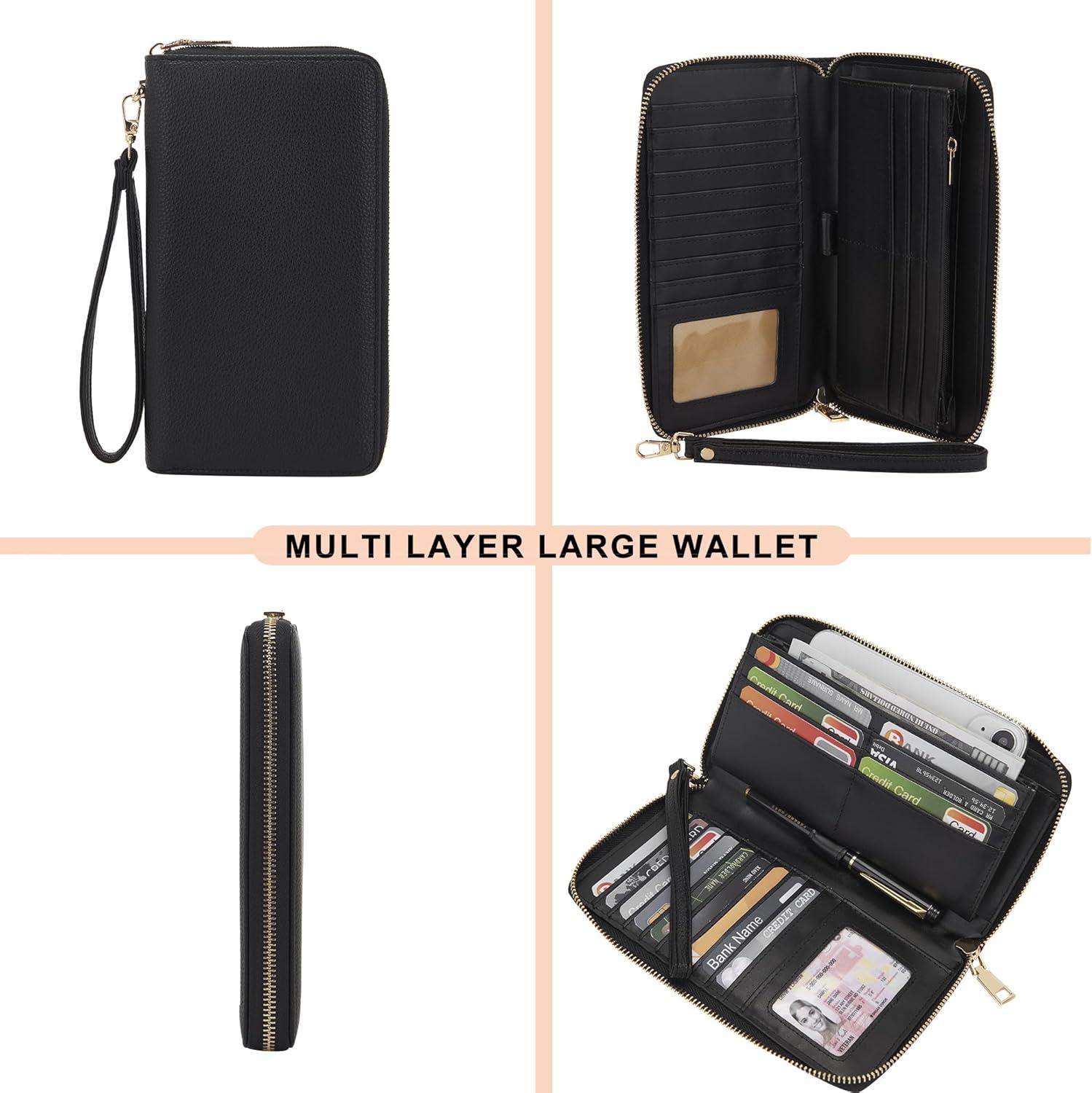 YZAOLL Women’s Zip-Around Wristlet Wallet with RFID-Blocking Proteceion Large Capacity PU Leather Cards Holder with Checkbook Passport Slots,Brown(Black)