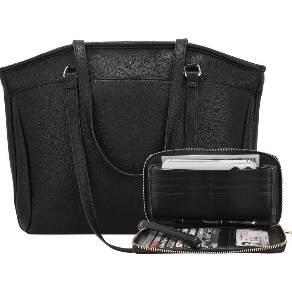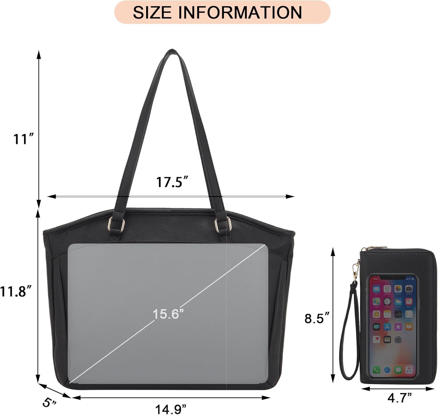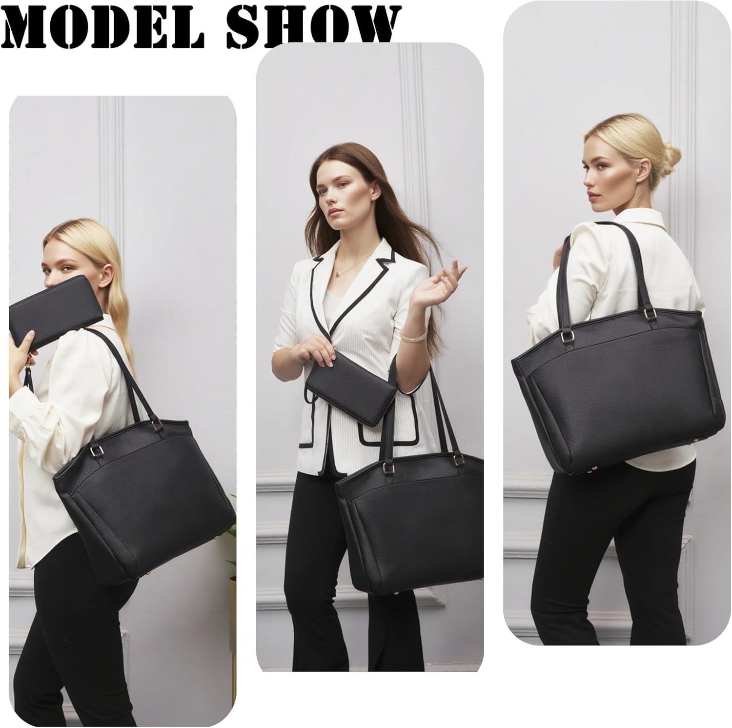 YZAOLL 15.6 Inch Laptop Tote Bag for Women,Lightweight Water-resistant Vegan Leather with Padded Sleeve Multi-Pocket Work Bag(Black)